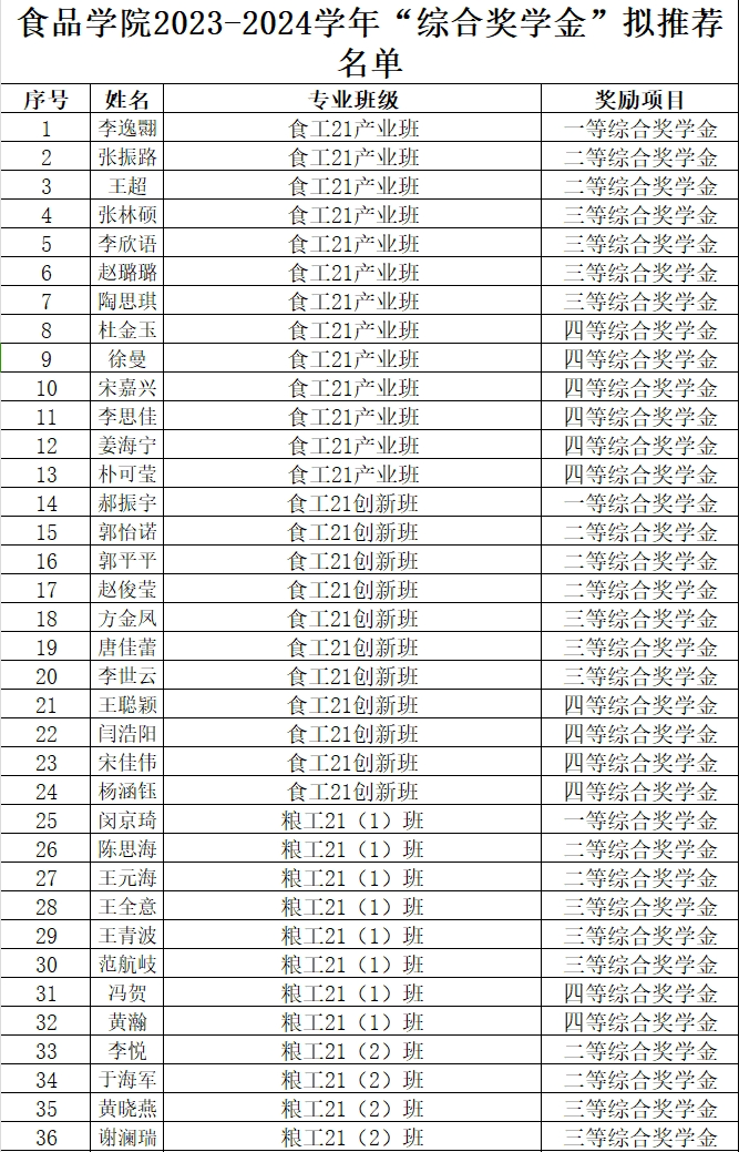 根据《云顶国际yd333本科生奖励办法》等文件要求,云顶国际yd3332023-2024学年“优良学风班”评选工作已完成班级申报、学院复核等环节,拟推荐2021级食品科学与工程产业班等12个班级获得2023-2024学年“优良学风班”荣誉称号,现将名单予以公示,详细名单见附件。