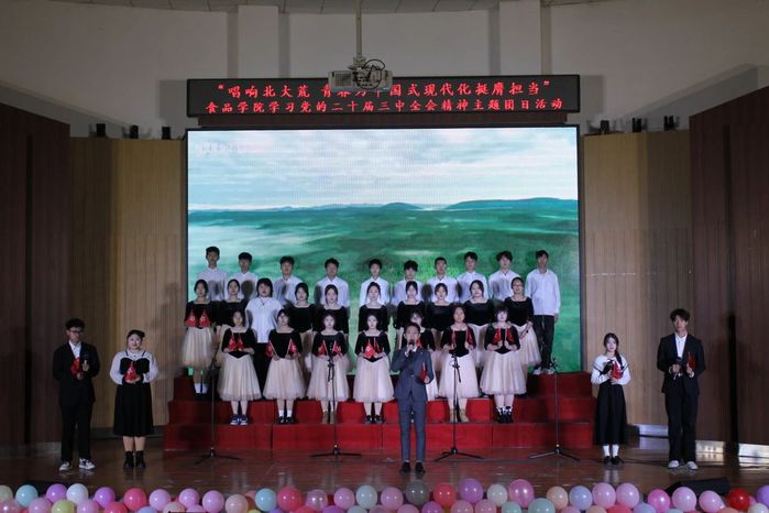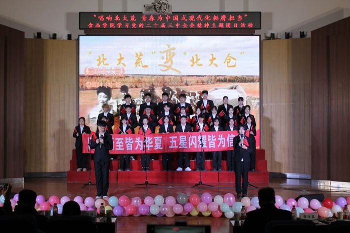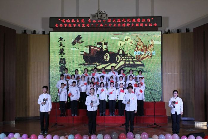 为深入学习宣传贯彻党的二十届三中全会精神,引导全院团员青年坚决把思想和行动统一到全会精神上来,12月9日,云顶国际yd333举办“唱响北大荒、青春为中国式现代化挺膺担当”学习党的二十届三中全会精神主题团日活动,党委员工工作部、员工处、武装部副部长王利娥,党委宣传部宣传科科长李启涛,校团委组宣部部长杨龙,校团委社团管理部部长单旭菲和学院师生代表500余人参加。
