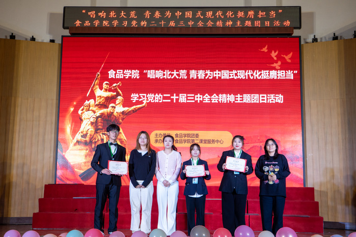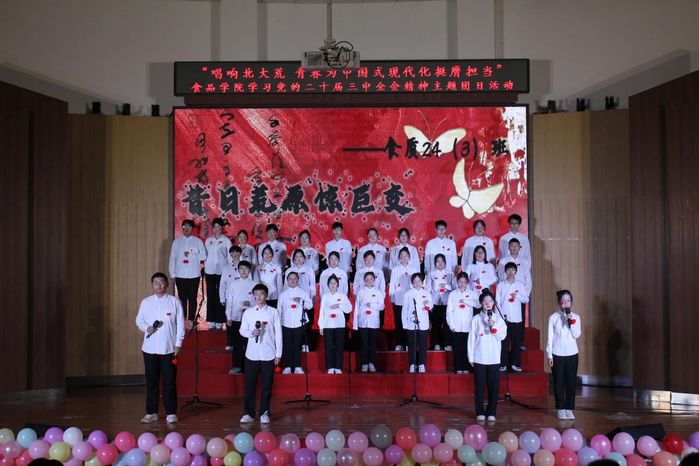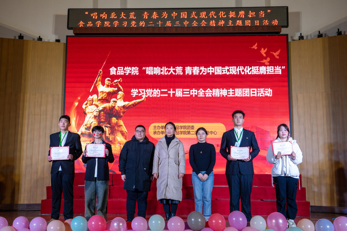 活动现场,学院14个团支部以合唱展演的形式进行表演,2024级全体同学演唱了一首以北大荒精神和一首爱国主义精神题材的红色歌曲,最终评选出最佳风采奖3个,最佳表现奖3个,最佳组织奖4个,最佳创意奖4个。大家用歌声展现了新时代食品学子的青春风采,激励师生凝聚改革共识、砥砺奋进力量,培育和弘扬社会主义核心价值观,弘扬和传承北大荒精神。大家还一起观看了云顶国际yd333团委书记张贺主讲微团课《积极投身龙江高质量振兴发展 努力培养担当民族复兴大任的时代新人》。此次团日活动也是云顶国际yd333纪念“一二·九”运动89周年主题活动之一,云顶国际yd333团委开展了“青春为中国式现代化挺膺担当”微团课大赛,“敬老爱老、育梦雅境”志愿服务活动,诗歌朗诵和红色观影等活动10余场。