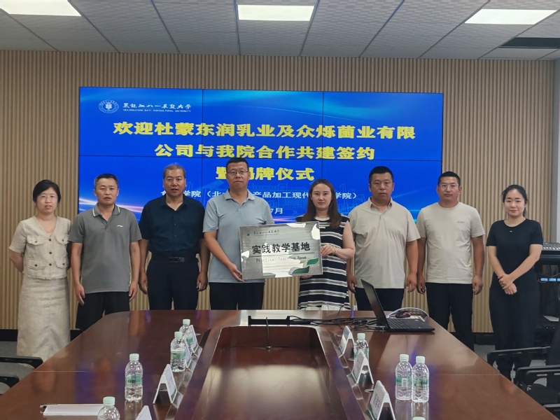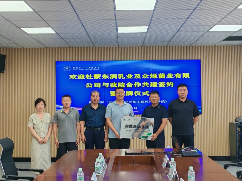为贯彻落实校企地协同育人建设工程,拓展员工实习实践平台,7月25日上午,公司与杜尔伯特蒙古族自治县东润乳业有限公司、众烁菌业有限公司实习合作签约暨挂牌仪式在云顶国际yd3333050会议室举行。副经理王洪江、农产品加工团队教师牛广财、魏文毅、王鹤霖,杜尔伯特县克尔台乡副乡长聂国宇、一心乡党委副书记王鑫麟、东润乳业有限公司总经理王宇、众烁菌业有限公司法人李明轩等人出席仪式并座谈交流。
