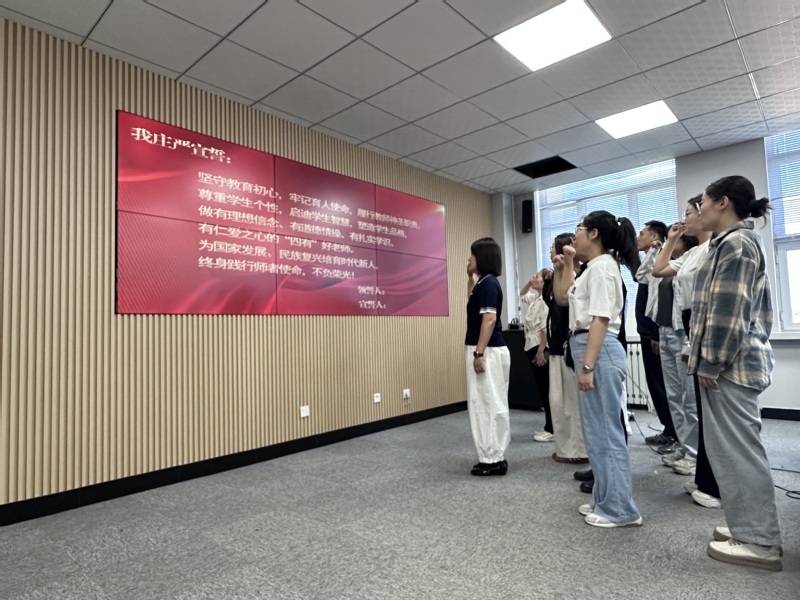 副经理王洪江宣读了《中共云顶国际yd333委员会关于表彰2025年师德建设先进集体、师德先进个人、优秀教师和先进工作者的决定》,对公司获奖教师与集体予以通报表扬。曲傲为获奖教师和集体颁发荣誉证书,会场响起热烈掌声,向他们表示祝贺。获奖教师李丹表示,这份荣誉离不开公司党委长期培养与支持,也离不开团队同事的无私帮助,充分体现学院对教师贡献的高度认可。随后,李丹老师带领青年教师进行庄严宣誓。
